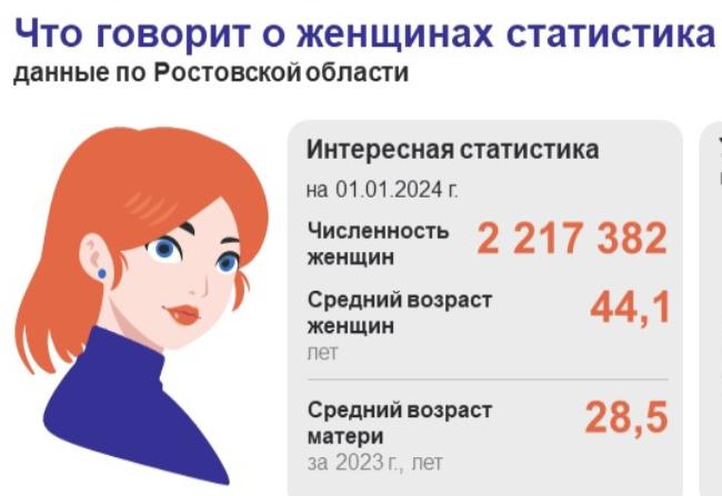 Средний возраст работающей женщины в Ростовской области – 42-43 года, что соответствует общероссийским показателям.