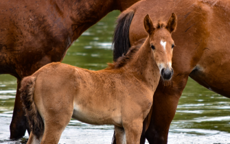 В Ростовской области На острове диких мустангов в озере Маныч-Гудило пополнение среди лошадей