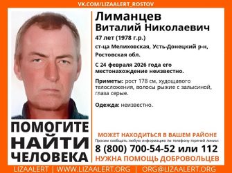 Мужчина пропал в станице Мелиховской Усть-Донецкого района 24 февраля