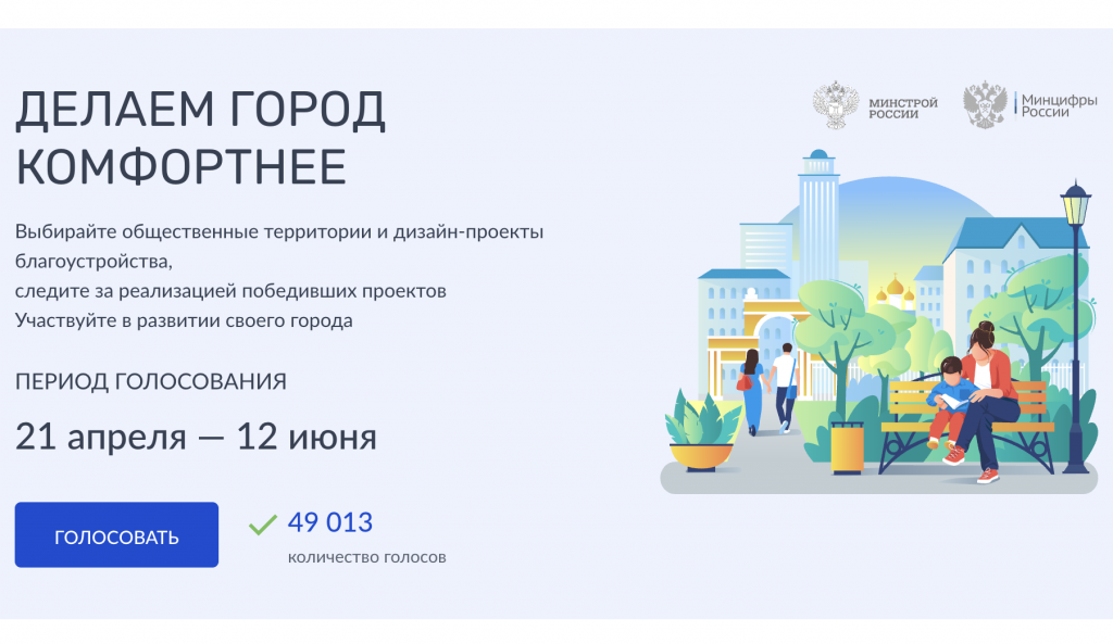 Кроме того, участвовать в выборе территорий можно через мобильное приложение «Госуслуги. Решаем вместе» или с помощью волонтёров.
