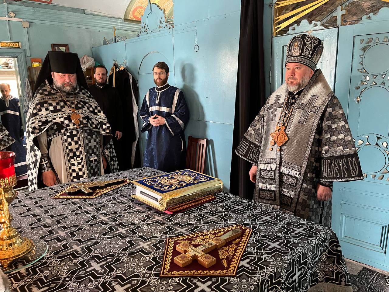 Во время богослужения состоялось поклонение кресту, который был установлен в центре храма. По завершении, в соответствии с уставом Крестопоклонной седмицы Великого поста, святыню внесли в алтарь.