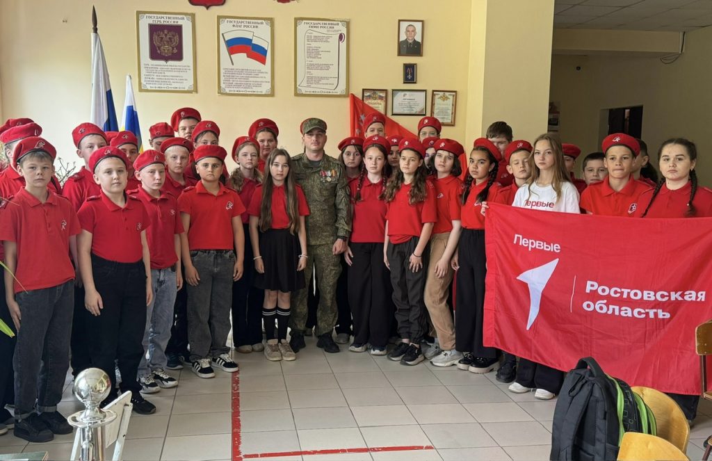 В Новошахтинске продолжается реализация патриотических инициатив, направленных на воспитание молодежи. В рамках этих мероприятий в конце мая в школе №28 прошла встреча юнармейцев отряда «Пламя» с участником специальной военной операции — старшим сержантом, командиром штурмовой группы Евгением Сергеевичем Задириевым, кавалером ордена Мужества.