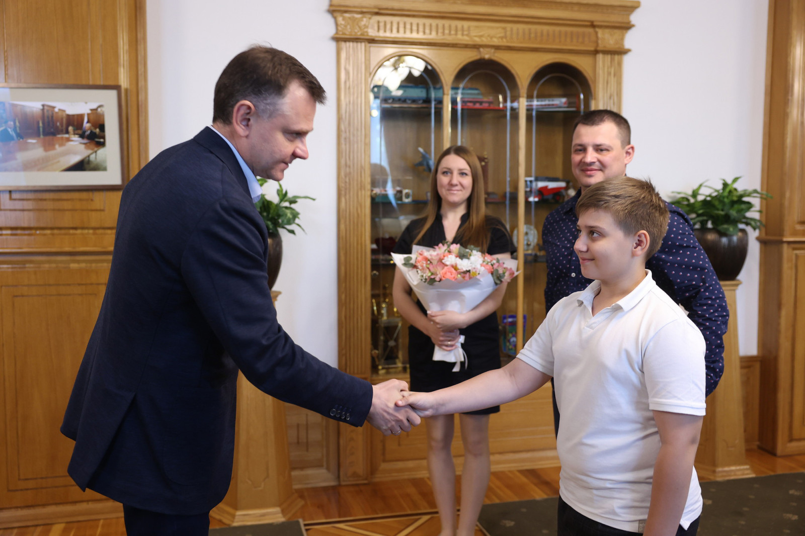 Глава региона Юрий Слюсарь провёл встречу с 10-летним жителем Волгодонска Дмитрием Русаковым и его родителями.