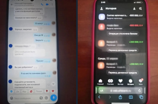 После перехода по ссылке злоумышленники получили доступ к его аккаунту. Далее под давлением «сотрудников службы поддержки» мужчина сфотографировался с документами, оформил займ у знакомого на 500 тысяч рублей, приобрёл новый телефон и SIM-карту, установил стороннее приложение и перевёл все деньги на указанные счета якобы для «легализации средств».