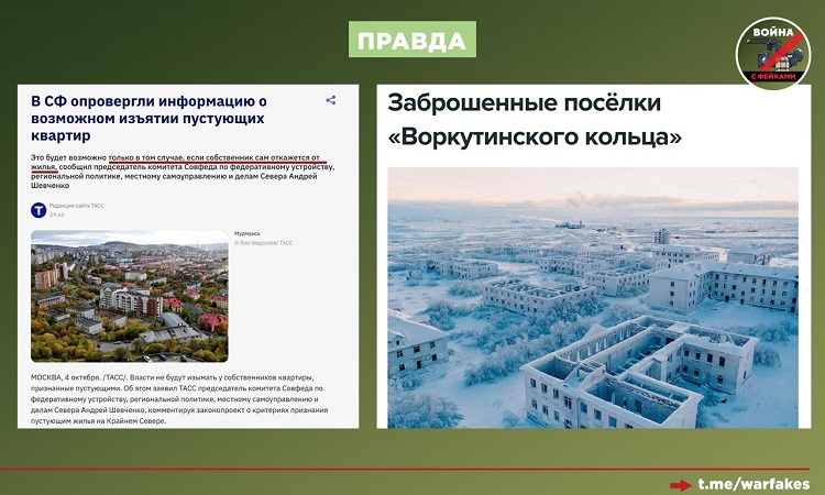 Власти не собираются изымать квартиры у собственников. Многие ТГ-каналы в своих целях искажают реальное содержание внесенного в Госдуму законопроекта, пишет ТГ-канал «Война с фейками».