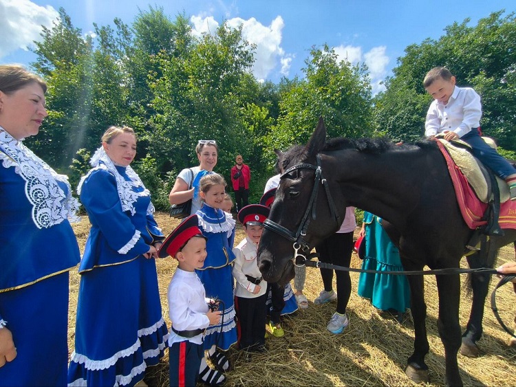 Некоторые казачата впервые встретились с верным другом казака — конем. Самые смелые из них имели возможность посидеть в седле красивого черного жеребца с разрешения своих родителей и под присмотром опытных наставников.