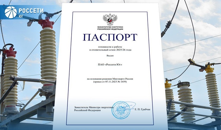 Компания «Россети Юг» официально получила Паспорт готовности к прохождению отопительного сезона 2025–2026 годов. Об этом сообщается в соцсетях энергосетевого холдинга.