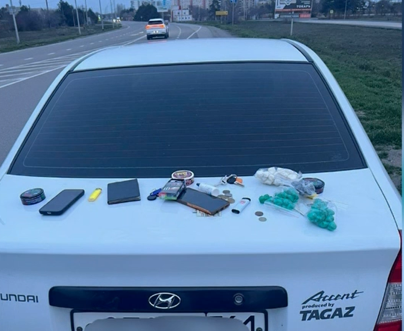 В селе Кулешовка Ростовской области инспекторы ДПС 3 взвода 1 роты отдельного батальона ДПС ГИБДД №1 остановили для проверки автомобиль такси с пассажирами. Поведение молодых людей вызвало подозрения у сотрудников полиции: они заметно нервничали и постоянно оглядывались по сторонам. Это послужило основанием для проведения личного досмотра.