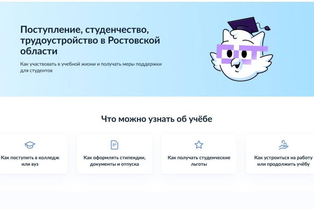 Так, в «Каталоге жизненных ситуаций», где представлены наши региональные сервисы (Покупка гаража и Становление молодого специалиста – от учебы до трудоустройства).Это первые лендинг-страницы, разработанные минцифры Ростовской области в рамках проекта «Государство для людей».