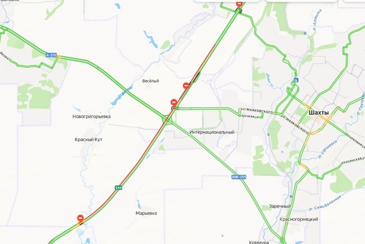Движение от населенного пункта Красюковского до Пролетарского практически остановилось. Дорожный затор растянулся на 12 километров.