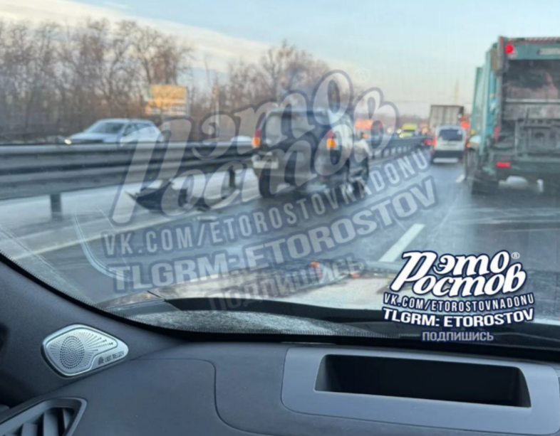 Авария произошла между Ростовом-на-Дону и поселком Красный Колос, из-за чего на дороге образовалась пробка в обоих направлениях.