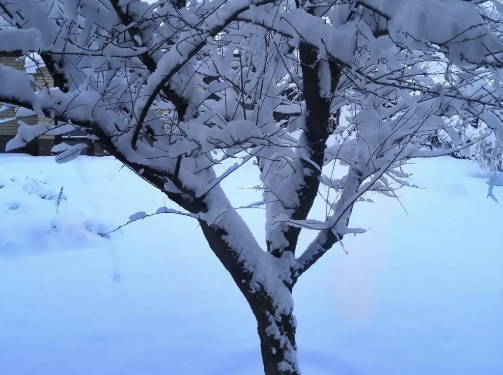 Для крупных и массивных ветвей плодовых и декоративных деревьев можно установить опорные конструкции, снижающие риск повреждений под тяжестью снега.