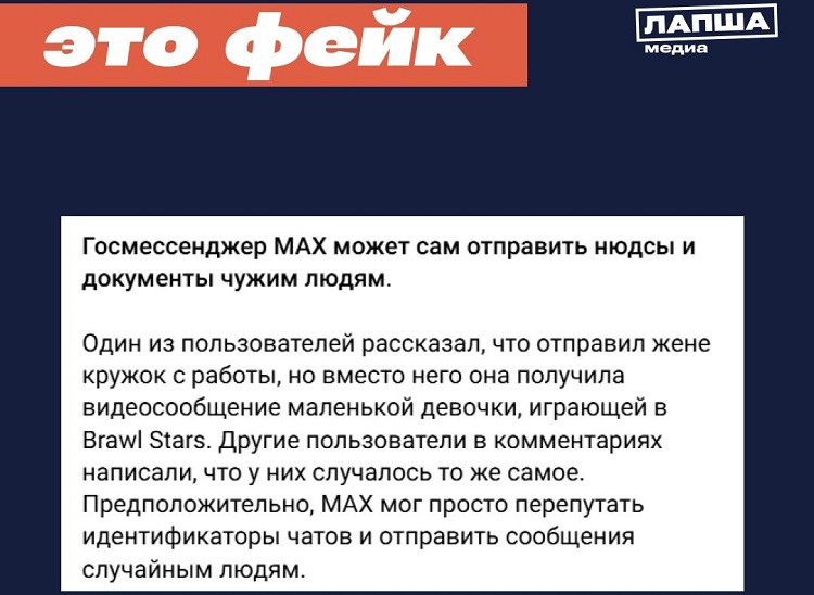 Информация о том, что видеосообщения в мессенджере MAX якобы могут случайно отправляться посторонним пользователям из-за технических ошибок, не соответствует действительности, пишет «Лапша Медиа».