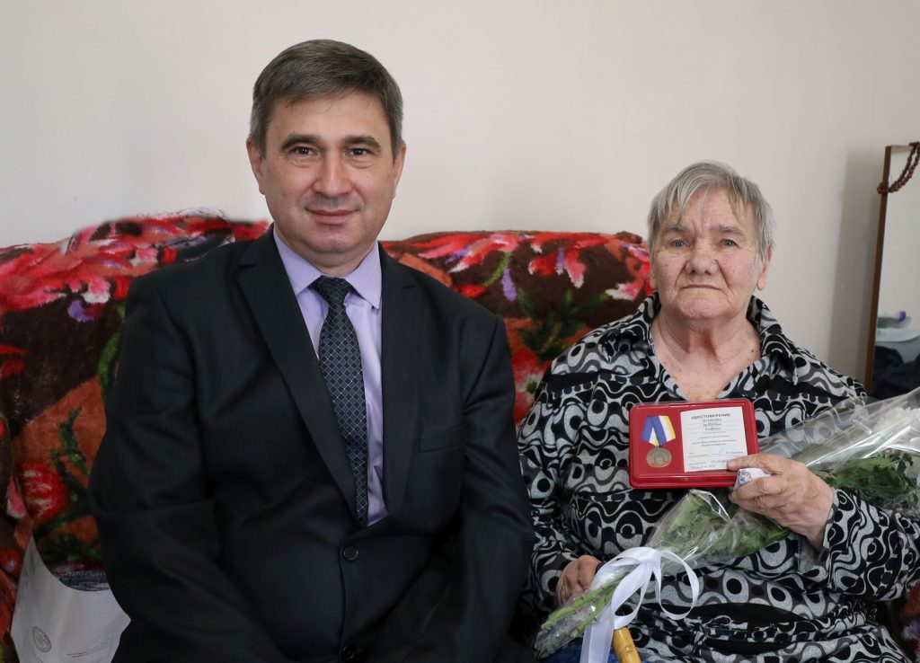 Управляющий делами администрации Новошахтинска Юрий Лубенцов передал Валентине Егоровне медаль, поблагодарил ее за труд на благо Родины и пожелал здоровья и долгих лет жизни.