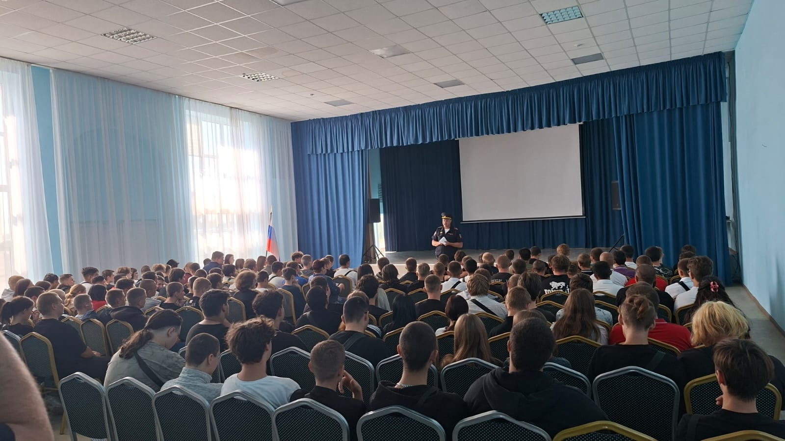 Студенты Новошахтинского технологического техникума встретились с начальником отделения Госавтоинспекции ОМВД России по Новошахтинску майором полиции Николаем Быхаловым. Разговор был посвящён росту ДТП с участием несовершеннолетних, управляющих транспортом без водительских удостоверений.