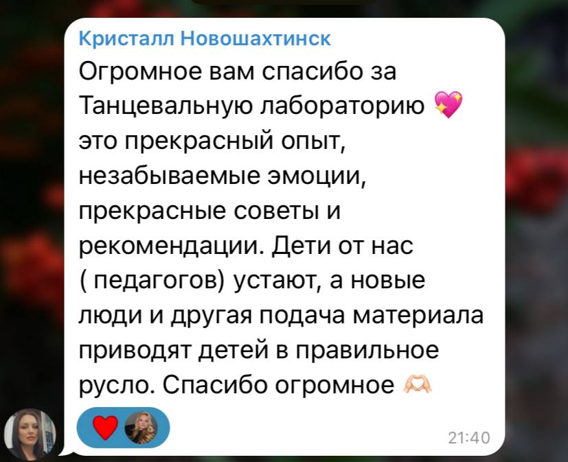 Добавим, сегодня в ТГ-канале «Танцевальные проекты Анатолия Виноградова» опубликовали такой отзыв из Новошахтинска: