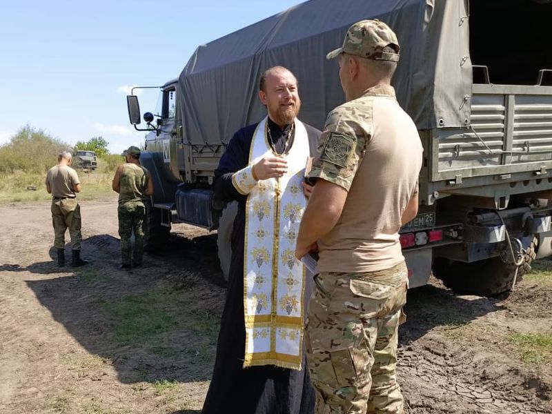 В августе 2023 года благочинный приходов Новошахтинского округа протоиерей Роман Амплеев посетил воинские подразделения, где провел духовные беседы и освятил места дислокации, транспорт и личный состав.