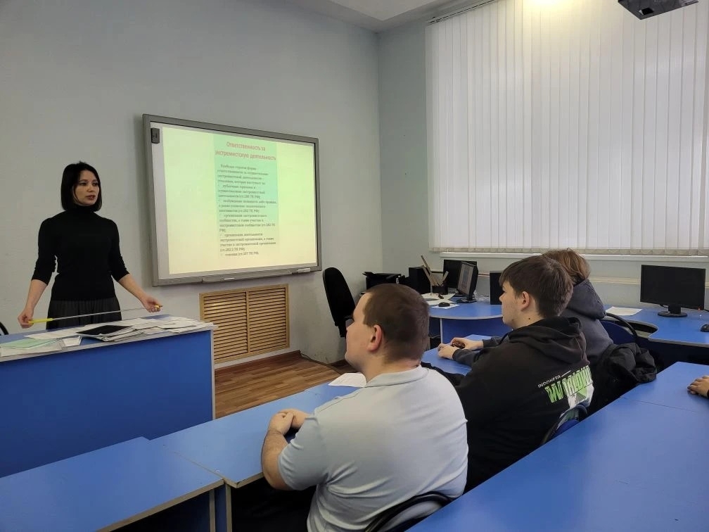 Рассматривая вопрос об ответственности за экстремистскую деятельность, студенты получили чёткое представление о правовых последствиях экстремизма, узнали об административной ответственности за пропаганду запрещённой символики, распространение экстремистских материалов, уголовной ответственности за публичные призывы к экстремизму, возбуждение ненависти или вражды.