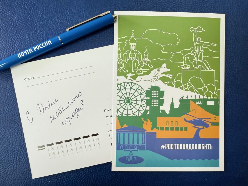 На всех открытках сотрудники почты поставят оттиск памятного переводного штемпеля — «С днём города Ростова-на-Дону», который выпустили к 275-летнемуюбилею в прошлом году. На нём изобразили образы теплохода, башни с часами ЦУМа и колокольни на Соборной площади.