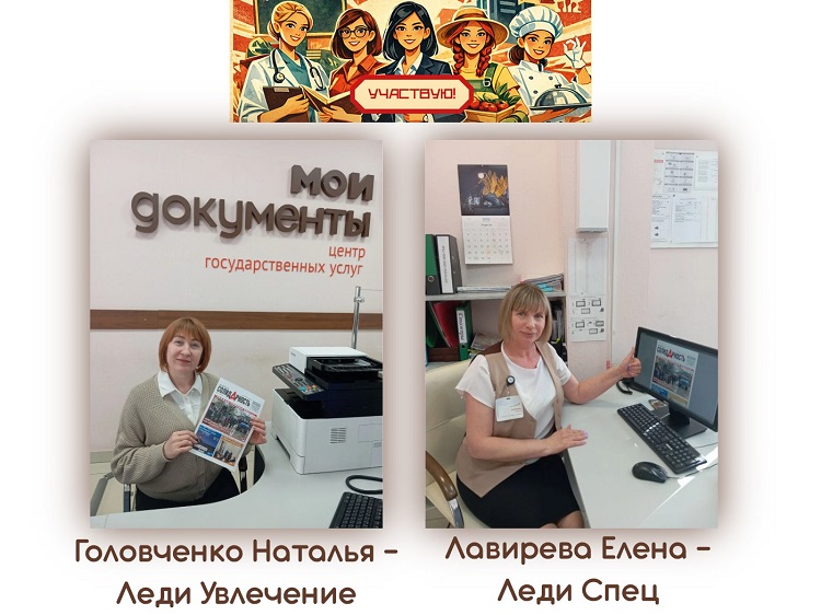 Начальник отдела по работе с населением Елена Лавирева заявлена в номинации «Леди Спец», а главный специалист по приёму и выдаче документов Наталья Головченко участвует в категории «Леди Увлечение».