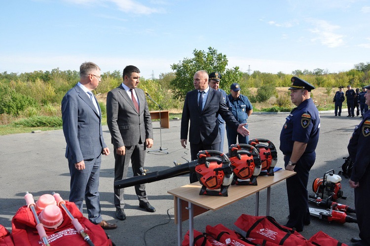 Областным пожарным передано 50 воздуходувок, 70 ранцевых огнетушителей и 10 комплектов гидравлического аварийно-спасательного оборудования.