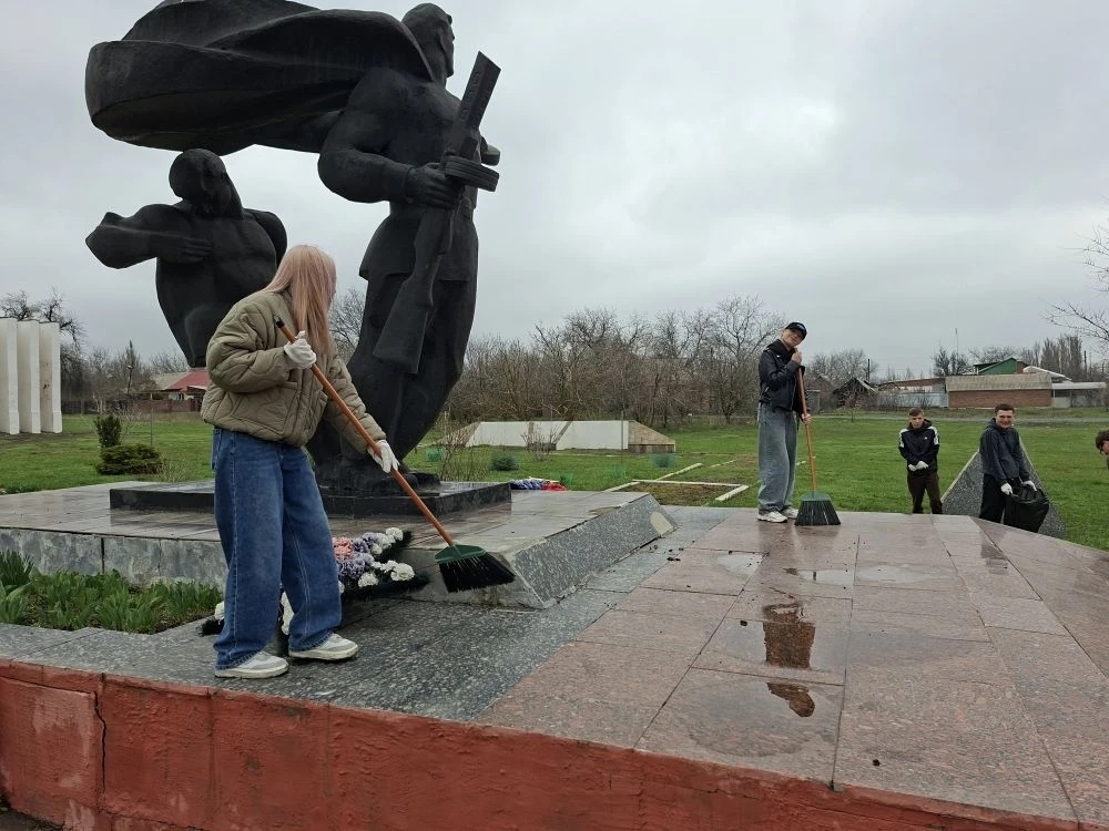 5 апреля к акции присоединились студенты Новошахтинского технологического техникума. Они навели порядок на мемориальном комплексе «Раненый солдат».