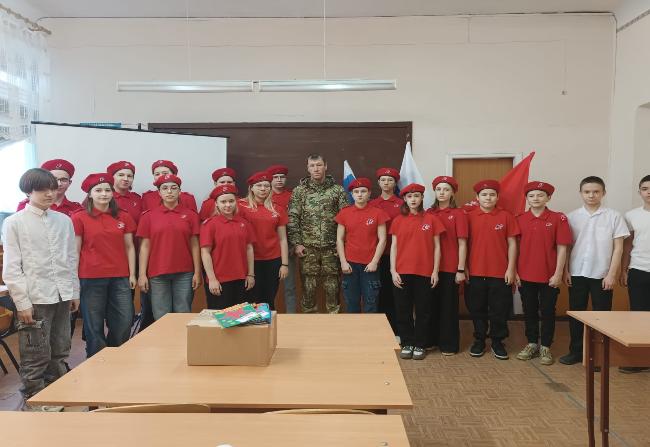 Школьники задавали вопросы о военной жизни, условиях на передовой и трудностях службы. В завершение встречи ребята пожелали бойцу крепкого здоровья и скорейшего возвращения домой, а также передали его сослуживцам открытки с поздравлениями и сладости
