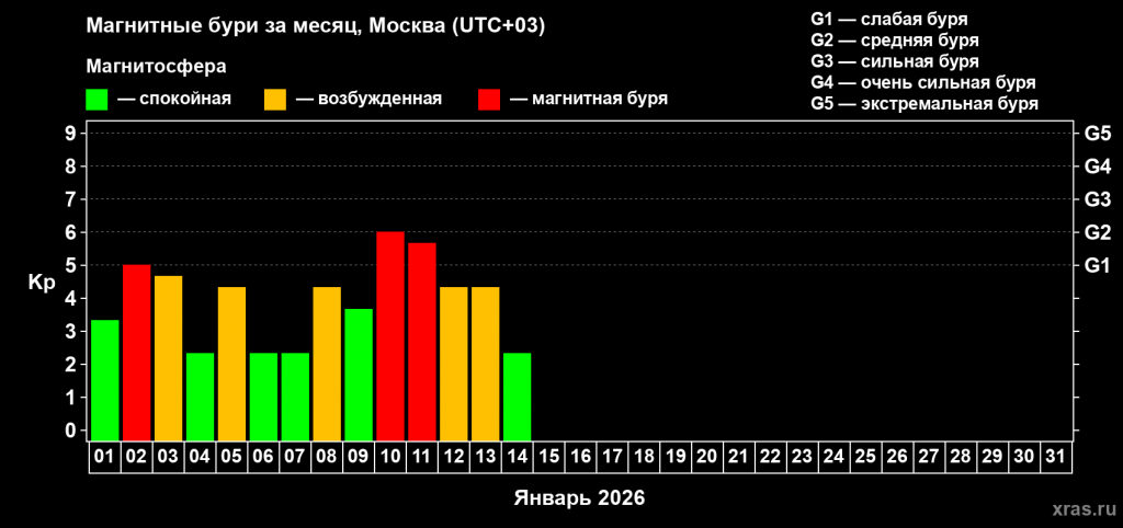 Так, за первые 14 дней января магнитное поле планеты оставалось неспокойным восемь дней, при этом три эпизода были классифицированы как полноценные магнитные бури. Специалисты отмечают, что делать окончательные выводы по итогам всего года пока рано, однако текущая динамика указывает на вероятность превышения рекордов 2025 года.
