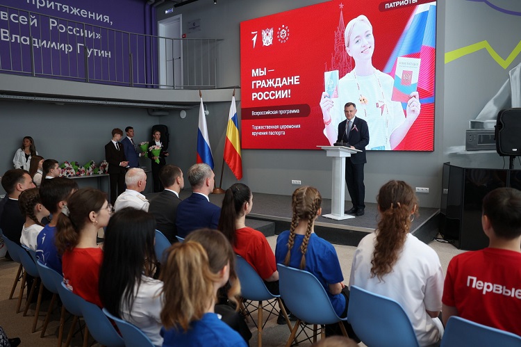 Глава региона вручил паспорта талантливым ученикам школ и лицеев Донского края. Все они — участники регионального «Движения первых».