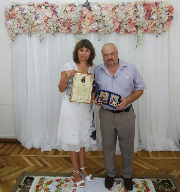 В этот день юбиляров также поздравили благочинный приходов Новошахтинского округа, настоятель храма в честь Донской иконы Божией Матери протоиерей Роман Амплеев и заведующая отделом ЗАГС Ольга Дашкевич.