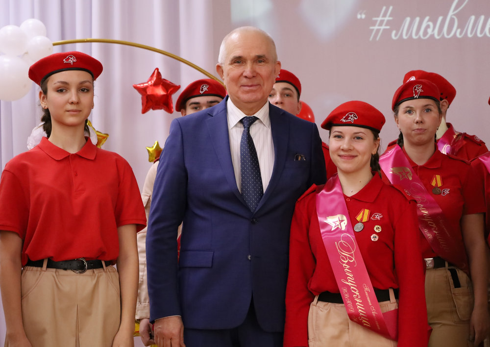 Сергей Алексеевич вместе с начальником штаба регионального отделения «Юнармии» Ростовской области Николаем Пономаренко вручил ленточки выпускника первым выпускникам-юнармейцам. Отмечено, что в Новошахтинске в ряды движения вступают уже с детсадовской скамьи — малыши активно участвуют в резервных отрядах.
