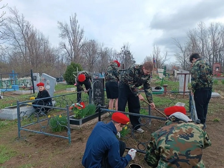 Сегодня, 4 апреля, юнармейцы новошахтинской школы № 79 убирали захоронение участника Великой Отечественной войны Ивана Петровича Петрова, сообщает управление образования Новошахтинска. Волонтеры не только прошлогодний сухостой и покрасили оградку.