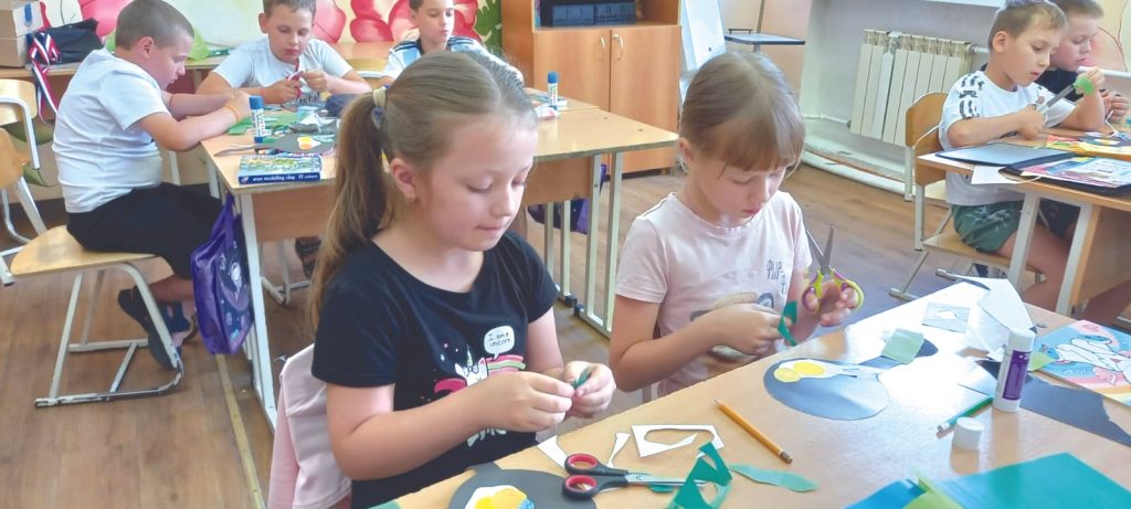 В школе №24 работа пришкольного лагеря «Улыбка» была по-настоящему творческой. Ребята с удовольствием участвовали в мастер-классах: то готовили забавные аппликации «Яичница с беконом и зеленью» — символ вкусного завтрака, то создавали аппликации «Летний дождь». Бумага, пластилин, природные материалы — всё шло в ход.