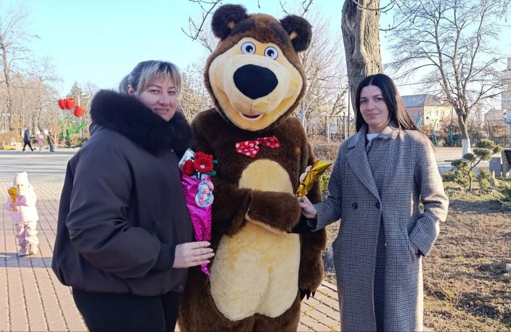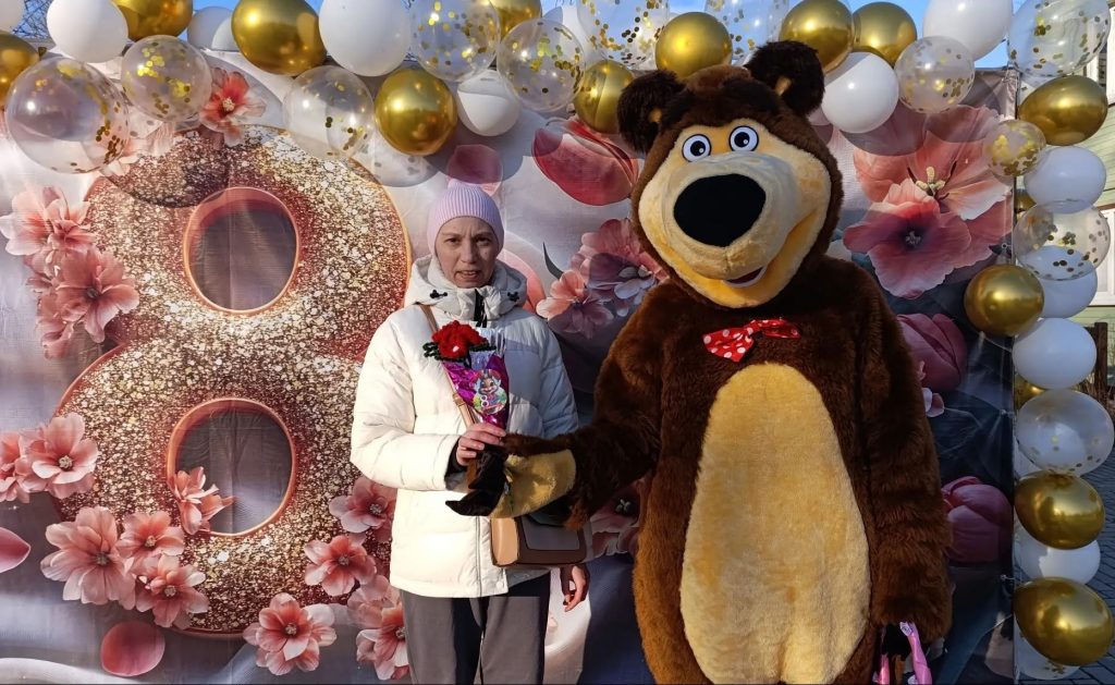 Главным героем праздника стал ростовой Мишка, который прогуливался по парку с корзиной весенних цветов и вручал их посетительницам. Неожиданные подарки, комплименты и дружеские объятия создавали атмосферу настоящего праздника. Многие гостьи парка с улыбкой принимали цветы и благодарили организаторов за внимание и тёплые эмоции.