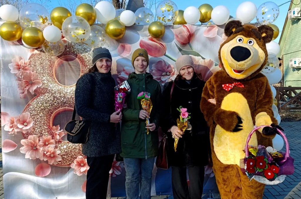 Главным героем праздника стал ростовой Мишка, который прогуливался по парку с корзиной весенних цветов и вручал их посетительницам. Неожиданные подарки, комплименты и дружеские объятия создавали атмосферу настоящего праздника. Многие гостьи парка с улыбкой принимали цветы и благодарили организаторов за внимание и тёплые эмоции.