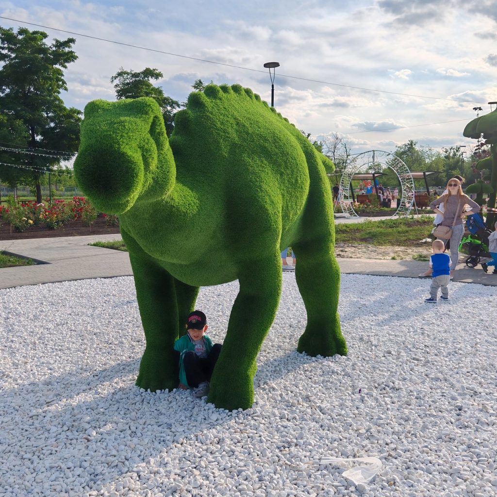 Новошахтинская детвора облюбовала место рядом с динозавром, увлеченно обследуя фигуру и с интересом разглядывая другие топиарии. Установка фигур продолжается. Пусть они стоят долго и радуют новошахтинцев и гостей города!