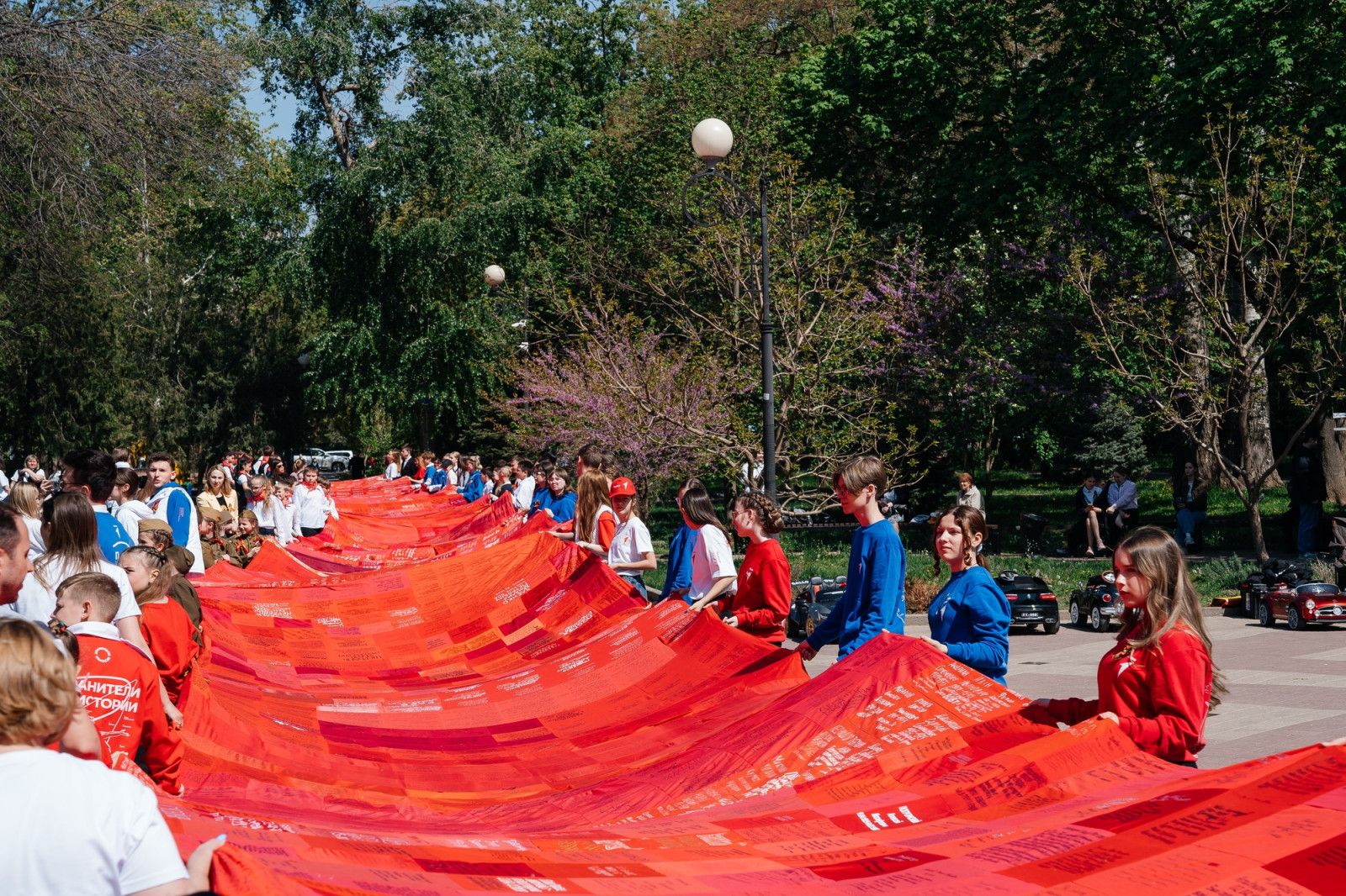 30 апреля, в день 80-летия водружения Знамени Победы над Рейхстагом в Берлине, в Ростовской области завершилась масштабная патриотическая акция «Полотно Победы», объединившая более 35 тысяч жителей региона. Её организовали активисты «Движения первых» и региональной детско-молодежной общественной организации «Содружество детей и молодежи Дона».