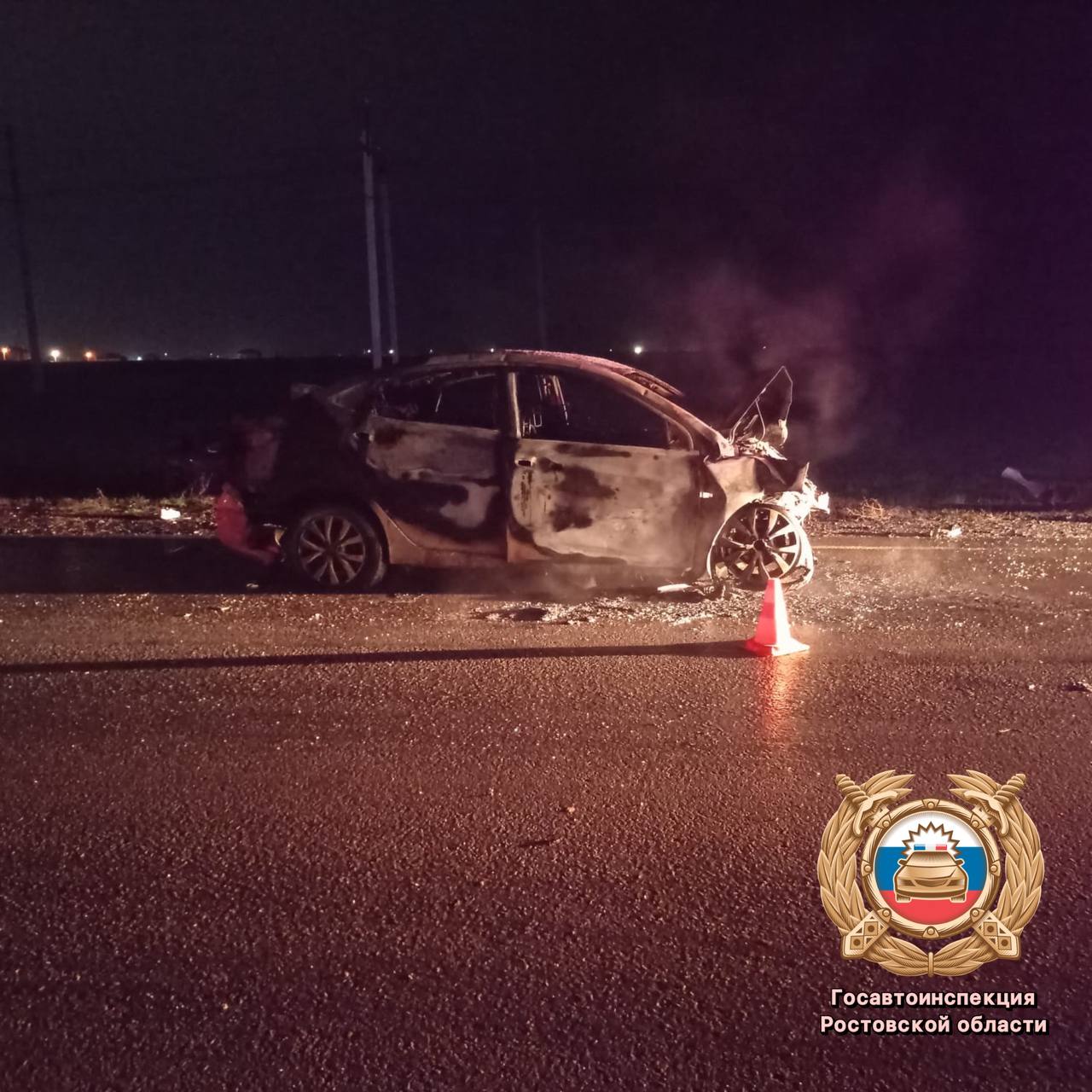 По предварительной информации, автомобиль BMW под управлением водителя 1991 года рождения выехал на встречную полосу и столкнулся с двигавшимся навстречу Hyundai Solaris, которым управлял мужчина 1980 года рождения. От удара легковушка загорелась, а BMW вылетел в поле.