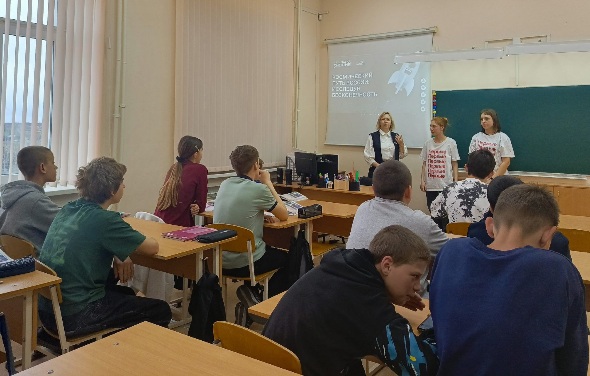 В преддверии Дня космонавтики в школе №27 состоялся тематический классный час «Космический путь России: исследуя бесконечность». Занятие провела советник директора по воспитанию Оксана Нижмак совместно с активистами Движения Первых.