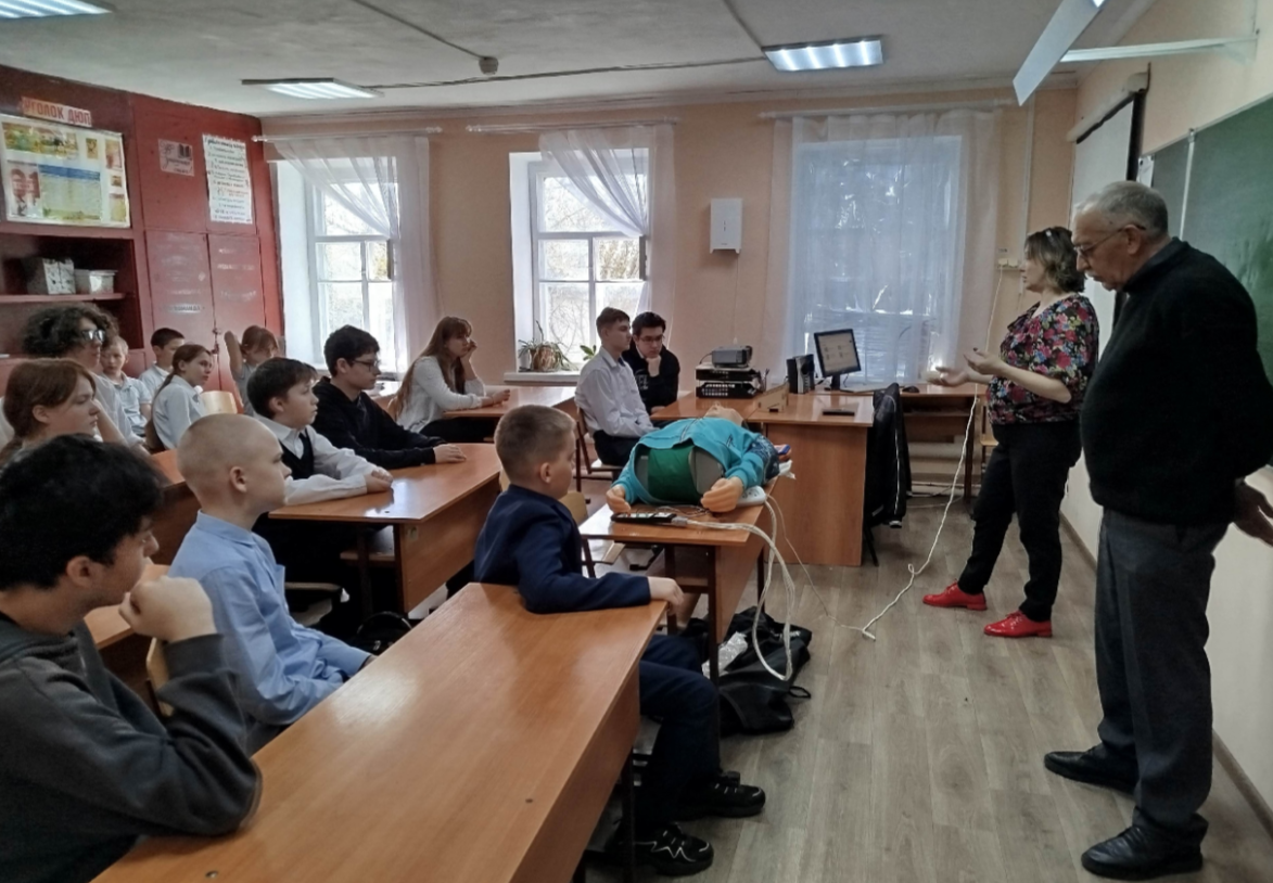 Также в рамках встречи сотрудник городского отдела ГО и ЧС Юрий Колесников провёл познавательную беседу о работе экстренных служб, задачах ведомства и значении гражданской обороны. Особый интерес у учащихся вызала практическая часть — школьникам наглядно показали навыки оказания первой медицинской помощи.