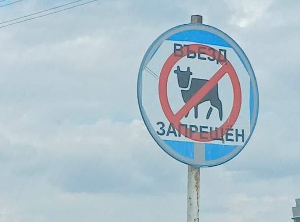 Пользователи соцсетей задаются вопросом: знак с коровой и красным крестом, возможно, ограничивает доступ скоту или водителям с животными.