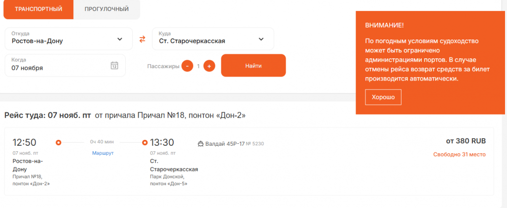 Скоро, 7 ноября, состоится первый рейс в живописную историческую станицу из Ростова-на-Дону на «Валдай 45Р». В компании пообещали, что до завершения навигации рейсы в данном направлении будут на ежедневной основе.