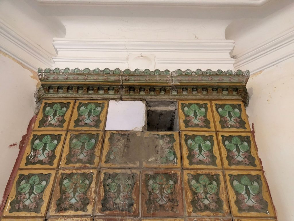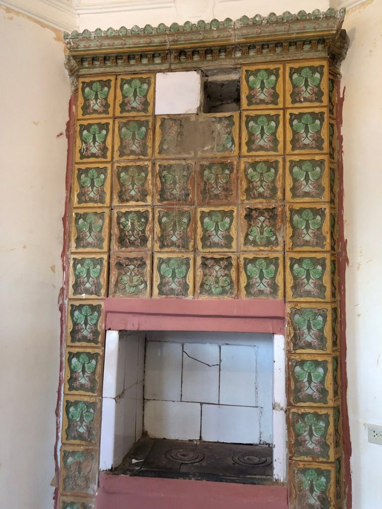 Сейчас печь нуждается в бережной очистке и реставрации: в советское время её приспособили для приготовления пищи, из-за чего часть изразцов была утрачена. Хозяйка дома планирует восстановить печь, включая утраченные элементы, и, по возможности, вернуть ей первоначальную функцию.