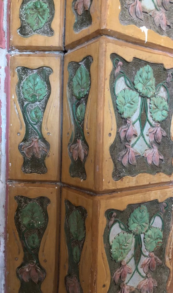 В одном из старинных особняков Таганрога, расположенном на улице К. Либкнехта, сотрудники музея «Градостроительство и быт г. Таганрога» обнаружили уникальную печь с терракотовыми изразцами. На плитках сохранился изящный орнамент из переплетённых цикламенов, также известных как альпийские фиалки.