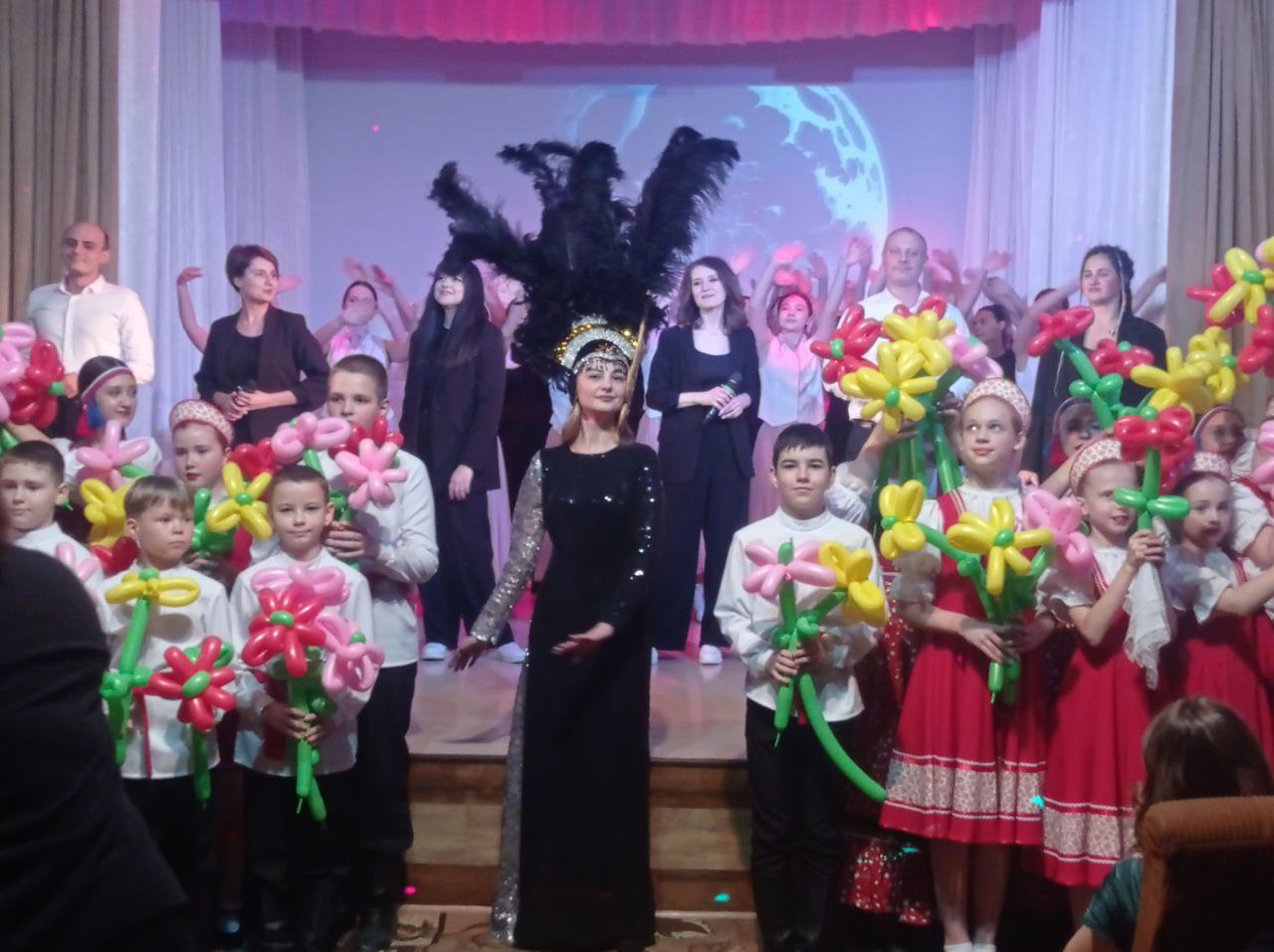 Завершился вечер красивой финальной песней «Верни мне музыку». Под её мелодию в зале прогремел салют из хлопушек, рассыпавший разноцветные ленты. А в подарок каждой женщине вручили яркие цветы из длинных скрученных шаров, вызвав улыбки и радость у всех присутствующих.