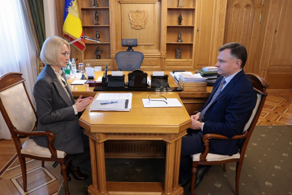 Рабочая встреча губернатора Ростовской области Юрий Слюсаря и заместителя председателя Государственной Думы Виктории Абрамченко состоялась в региональном правительстве.