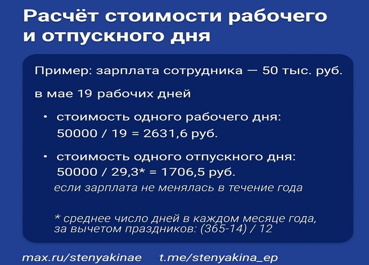 Причина в том, что май содержит всего 19 рабочих дней, а значит, стоимость одного рабочего дня в этом месяце выше, чем в среднем. В результате отпускные выплаты оказываются менее выгодными по сравнению с обычной зарплатой.