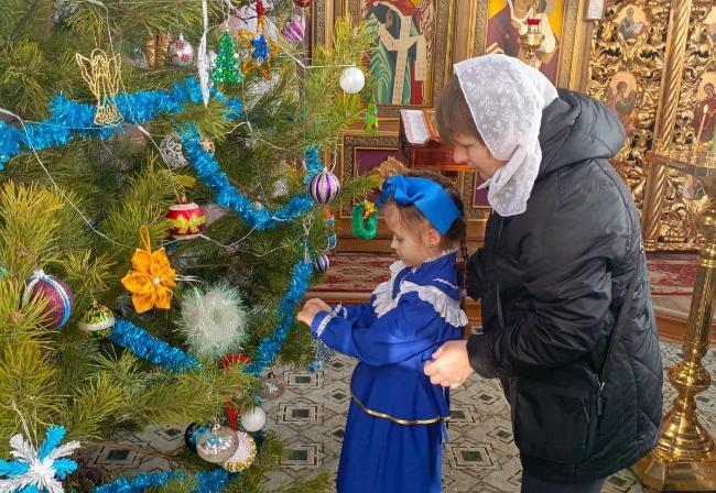 В казачьем детском саду №19 «Колокольчик» Новошахтинска ежегодно проходит творческий конкурс «Игрушка на Рождественскую ель». В этом году, в канун Рождества, воспитанники вместе с родителями собрались в Храме Архистратига Михаила, чтобы украсить ель игрушками, сделанными своими руками.