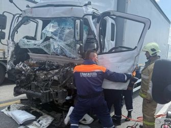 Столкнулись два грузовых автомобиля — «Фотон» и «Скания»