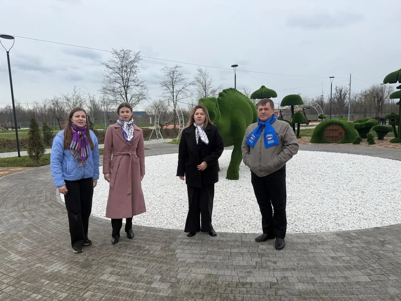 В рамках «Партийного десанта» аллею топиариев посетили депутат Новошахтинской городской Думы фракции «Единая Россия» Сергей Васильевич Сидоров, председатель молодёжного парламента при Новошахтинской городской Думе Лариса Крупович, исполнительный секретарь местного отделения Партии «Единая Россия» Татьяна Кошелева, а также представитель «Молодой Гвардии» Новошахтинска Ольга Гоголева.